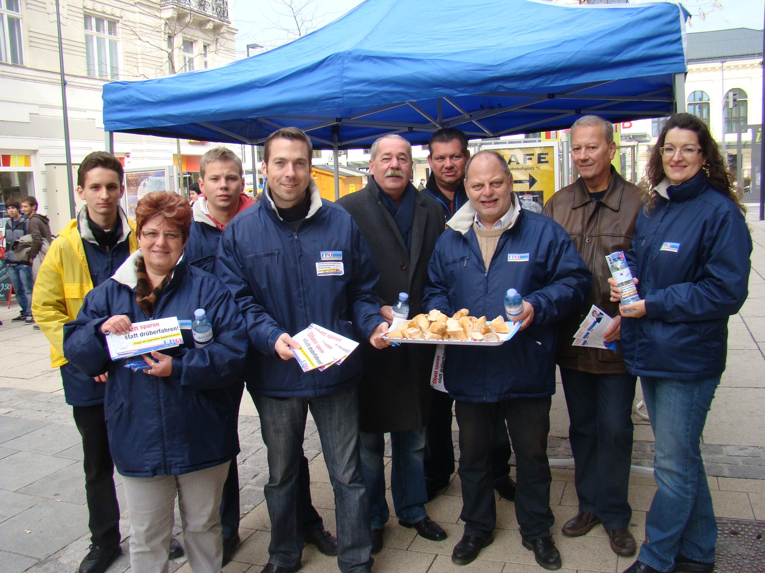 Unter dem Motto „Oben sparen, statt unten drüberfahren“ präsentierte die FPÖ St.Pölten am 23.10.2010 in der St.Pöltner Fußgängerzone ihre Herbstkampagne.