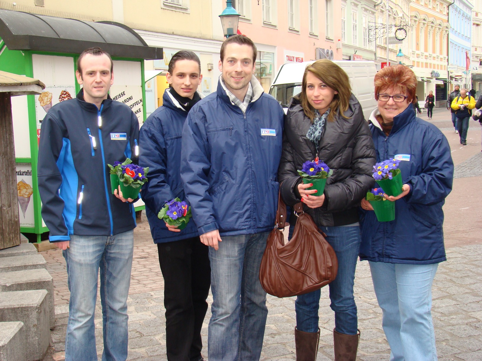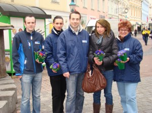 Sie verteilten hunderte Primeln an die Bürger in der Innenstadt und in diversen St. Pöltner Einkaufszentren.