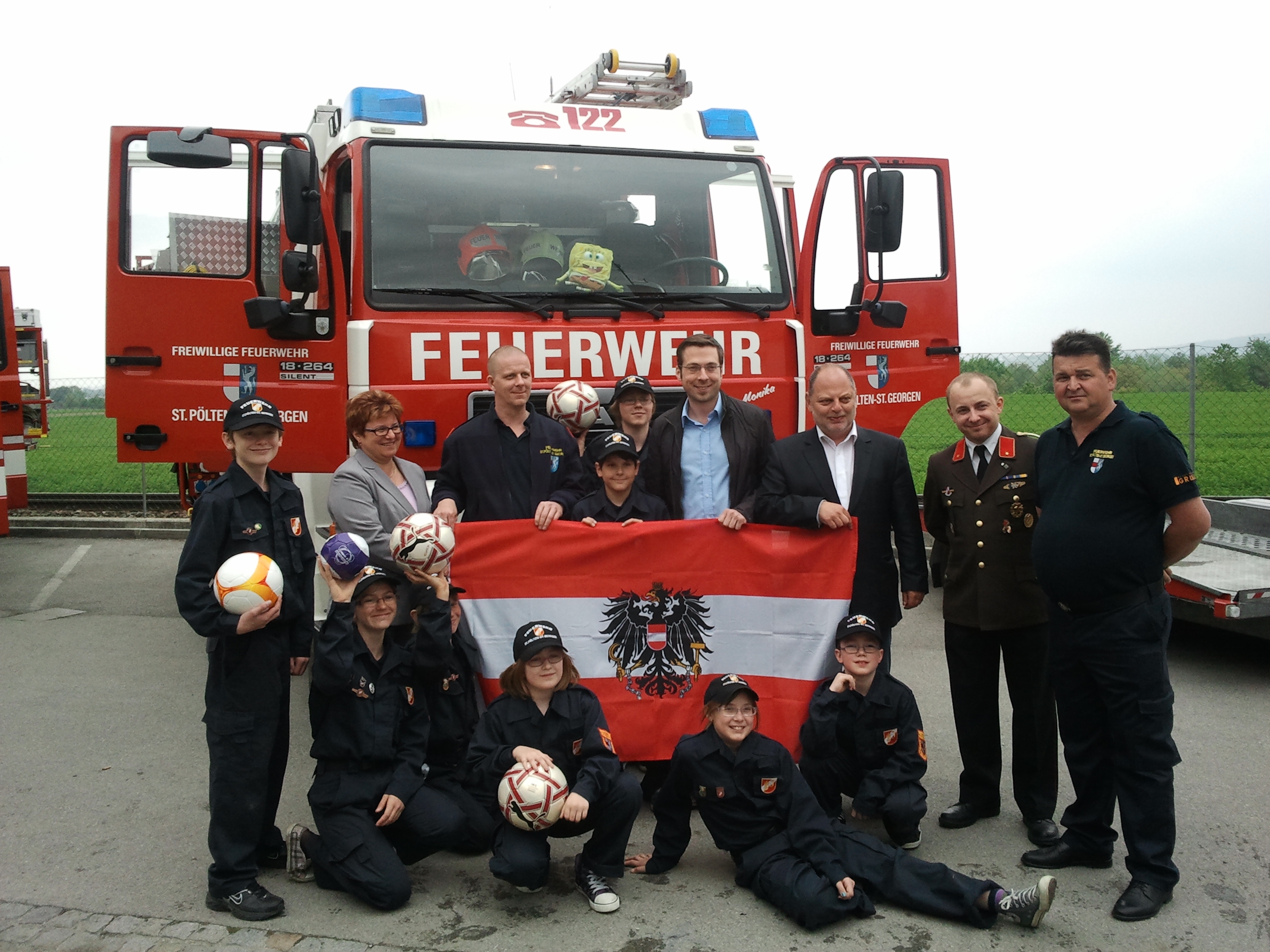 Besuch der FPÖ St. Pölten bei der Feuerwehr St. Georgen am 1. Mai 2011 bei der Maibaumaufstellung und bei der Jugendfeuerwehrolympiade. Stadtparteiobmann GR Peter Sommerauer und GR Klaus Otzelberger spendeten an die Jugendfeuerwehr Fußbälle und eine Österreich-Fahne.
