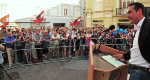 Nach einem ausgiebigen Abend beim Volksfest in St. Pölten war HC Strache am Riemerplatz und kam drei Tage später nochmals zu einer Presse-Konferenz im Gasthaus Gwercher. (Fotos von Franz Hagl)