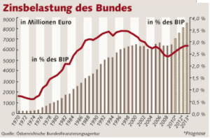 nd der hohen Staats-Schulden, muss derzeit JEDER Erwerbstätige im Schnitt 2000 Euro jährlich nur für die Zinsen bezahlen. Höhe Steuern und weitere Gebührenbelastungen werden die Österreicher in den nächsten Jahren noch weiter belasten.