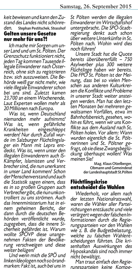Mein Leserbrief „Gelten unsere Gesetze nur mehr für uns?!“ in der Krone:
