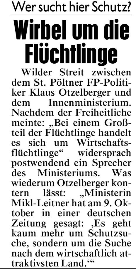 Einem FPÖ-Politiker zu widersprechen ist im Innenministerium scheinbar schon ein Reflex. Dass der Sprecher damit indirekt seiner Chefin Innenministerin Mikl-Leitner in den Rücken fällt, ist schon ein starkes Stück. Keine Zeitung außer der Krone war bereit über diese verbreitete Unwahrheit des Innenministeriums zu berichten! Manche Medien dürfen sich nicht wundern, dass sie als LÜGENPRESSE wahrgenommen werden, wenn sie Informationen derart manipulieren. Danke an die objektive Krone (30.10.2015).