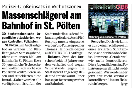 Neuerlich brutaler Raufhandel: 30 Tschetschenen attackierten brutal die Polizei am Bahnhof. Trotz aller Polizeiwagen aus St. Pölten mussten auch Polizisten aus dem Umland angefordert werden.