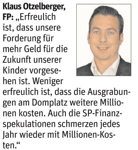 Meine Stellungnahme in der NÖN am 21.11.17 zum Budget-Voranschlag der SPÖ in St. Pölten.