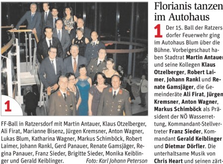 Die Stadräte Klaus Otzelberger und Martin Antauer zu Gast beim Feuerwehrball in Ratzersdorf. Tolle Stimmung mit Kommandant Gerald Keiblinger und Stv. Franz Sieder. Wir danken der Feuerwehr für den unermüdlichen Einsatz für unsere Stadt. Heute in der NÖN 21.11.17