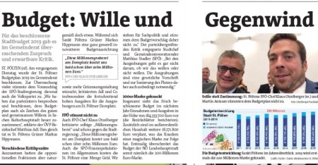St. Pölten: ÖVP stimmt für SPÖ-Budget 2019 – FPÖ als einzige Opposition