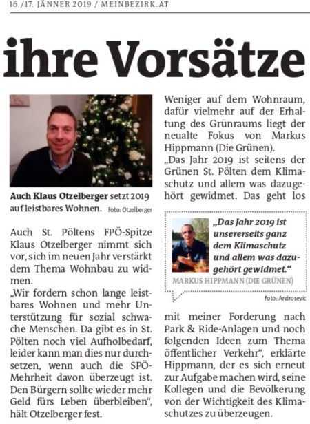 17/01/2019Die Bezirksblätter fragten Stadtrat Klaus Otzelberger was nehmen sie sich für das Jahr 2019 politisch vor?