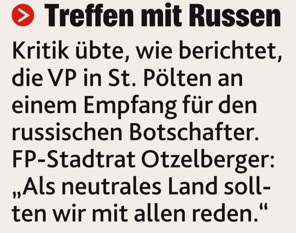 Ich hoffe auf ein baldiges Ende dieses schrecklichen Krieges. Österreich als neutrales Land sollte die Russen und Ukrainer zum Verhandlungstisch bringen, wie es einst Bruno Kreisky getan hätte.